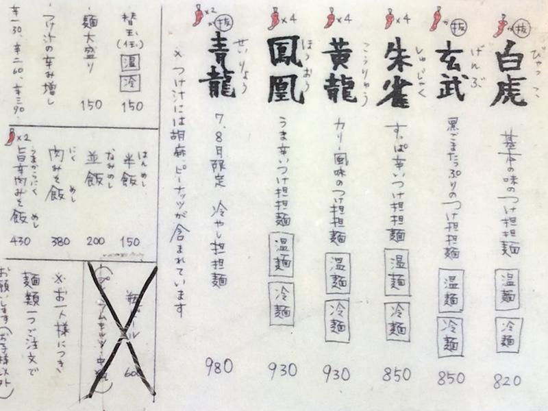 白虎と最後まで悩みましたが夏限定の冷やし坦々麺の青龍にしました。青龍は大盛りはできなくて替え玉のみの対応のようです。