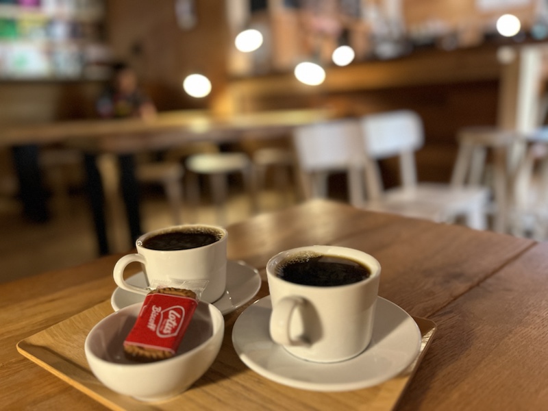 カップはIKEAでロータスのクッキーが付いてきました👍久しぶりに自宅以外でコーヒーを飲みましいたがたまにはいいですね。良心的な値段で居心地も悪くないですね。あまり詳しくないですがこだわりのオーディオだと思うのですが音楽も素敵でした🎵