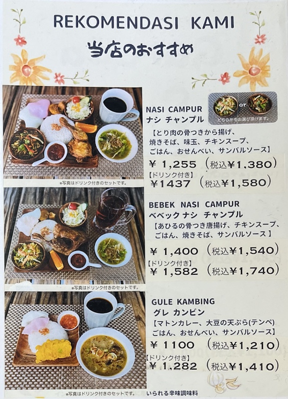しばらくして他のお客さんも見えましたが外国の方、おそらくインドネシアの方で日本人は自分たちだけでした。完全アウェーだけど居心地は悪くはない。