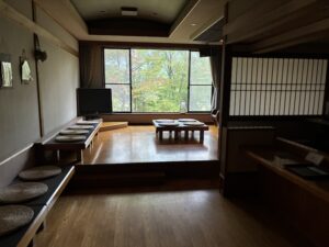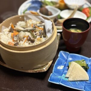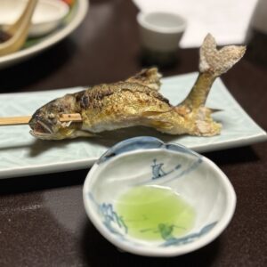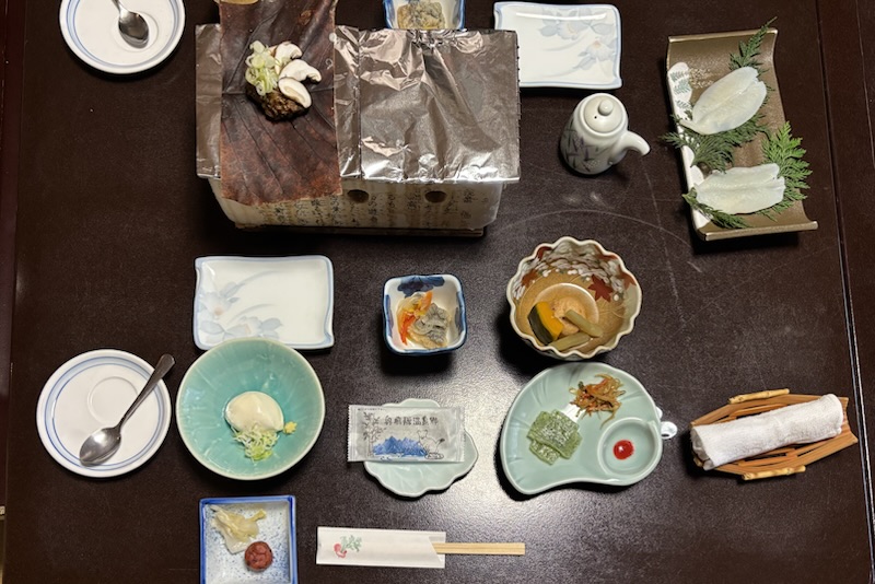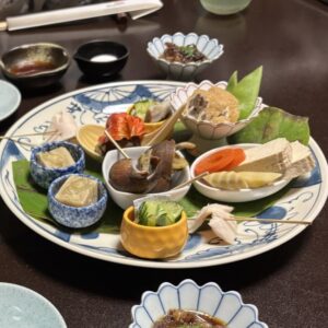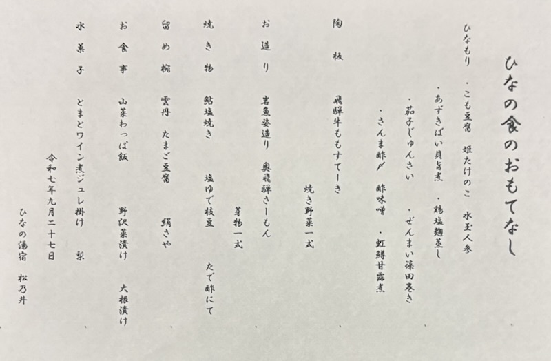 食事は部屋でも食堂でもなく、別の個室に用意されています。できるだけ省人化を計れるよう配慮されているようですが飛騨牛も川魚も味わえ、飛騨四季膳はなかなか良かったです👍