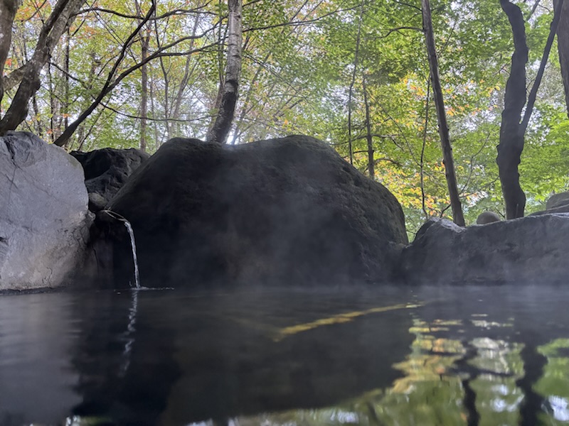 静かな雰囲気と少しだけ色づきだした木々、フッと香る湯の香りが最高のひと時ですね♨