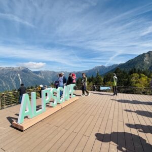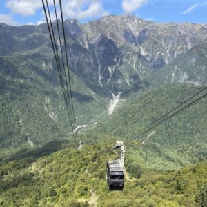 翌朝お天気も良かったので新穂高ロープウェイで山頂まで登り頂の森を散策してきました。途中駅のしらかば平までは車で行ってそこからロープウェイに乗ることに。駐車場代が600円入りますが時間を節約している方はこちらの方がいいのでは?ここには足湯とパン屋さんがありました。
