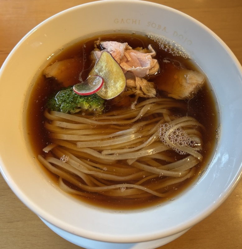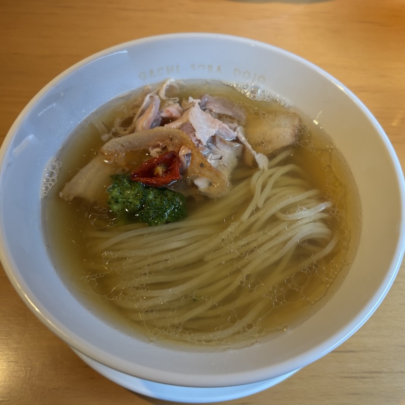 来ました、中華そば塩。麺は中太ストレート麺でしっかりと小麦の味がしていいですね。そこまでコシが凄いというわけでも柔らかいというわけでもなく魚介の香る塩スープにありますね。トッピングはブロッコリ、ドライトマト、蓮根フライ、チャーシュー、紫玉ねぎのスライスとなかなかオシャレなビジュアルだけでなく味の方も実力はありますね。1,100円は高いと思いましたがこれなら納得です。