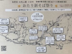 今年の新そばはタイミングを逸してしまいもう11月📅11月初の休みは三連休。長野のそば祭りは南信の『高遠そば新そば祭り』があるけど辛味大根の汁ということでちょっとパスだわ。ほかは白馬の小谷村でも新そば祭りやっているとのことで行ってみることにしました。8件の蕎麦屋さんと2軒のスイーツがエントリー。この中でも面白そうなそば屋蛍さんに行ってみることにしました。