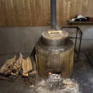 順番が来て呼ばれて店内に。12時20分ころだったので約一時間半ほど待ちました。店内は入ると灯油ストーブのにおいが少ししてランタンと囲炉裏もあり古民家の雰囲気が凄くよかったです。蕎麦をゆでてるところも直に見れていいですね👍