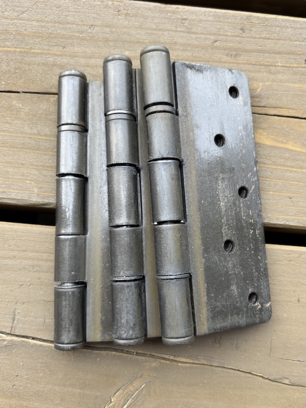今ついている旧の丁番のヒンジ部分が2mmほど摺動部すりへってドアも落ちてきますよね。ドアクローザーを外してドアを開け、ドアの下側から上に向かって持ち上げてやり、丁番が上側でそろったところで3つのうち上の方から順番に取り外して新しいものを取り付けました。結構骨が折れました。いくつかはねじ山がバカになっていたので同梱されていた眺めのビスで門でやりました。2時間ほどでしょうか?こういう日に限って寒いんですよね。ワンデバは玄関開けたら家中外と同じ気温になります(笑)