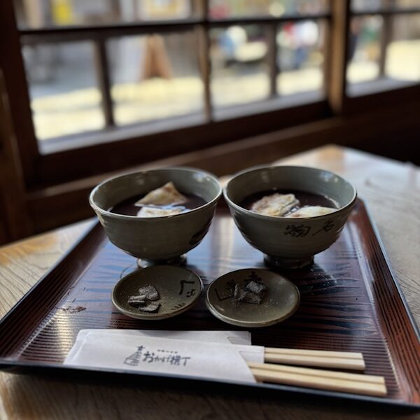 冬の超定番の赤福のぜんざい 800円 美味いよね。本店別店舗、内宮前支店はとんでもない行列だったので比較的行列が短かった団五郎茶屋でいただきました。