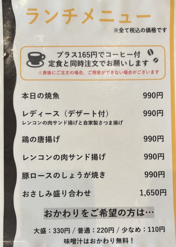 唐揚げと悩みましたが今日は豚ロースの生姜焼きにランチしました。990円と良心的なお値段なのでどんなのが来るのか楽しみです。ご飯はサイズを聞かれます、僕は普通にしました。
