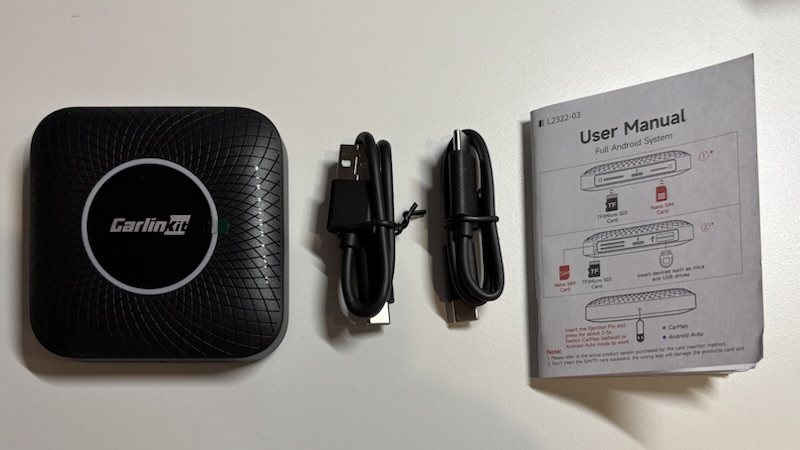 数日で佐川でとどきました。小さな箱で中には本体とA-CとC-Cの短いUSBケーブルが入っており多国語の説明書のミニミニ冊子が入ってました。なんと技適のマークがついてます‼️本体にはUSB CのボートとマイクロSDスロット、NanoSIMスロットのみです。あとで車から下ろして家でゆっくり設定するならHDMI出力もあるモノでも良かったかな?と思いました。