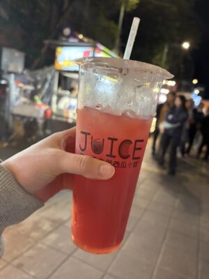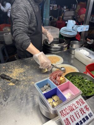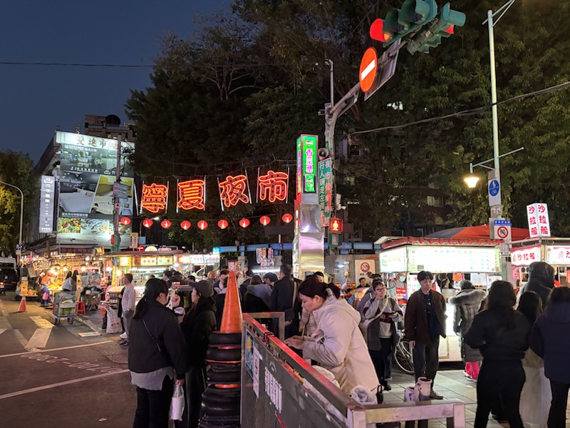 このあと歩いて寧夏夜市に移動しました。夜市の雰囲気にのまれそうでしたが一軒ずつ見てまわり夜ご飯を兼ねていろいろ食べてみることにしました。