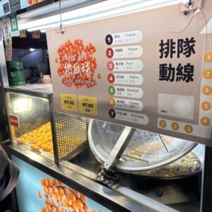 到着したのは18:30でしたがすでにこの賑わい。民生西路側の入り口です。まずは方家鶏肉飯の鶏肉飯50NTDと蔥仔蛋50NTDです。ここの鶏肉飯はミシュラン ビブグルマンに選ばれるほど美味しいです。僕も今まで食べた中では一番だと思います。蔥仔蛋は普通でした。2枚目は西瓜汁です。3枚目は雅米花生捲氷淇淋です。ピーナッツキャラメルを鉋で削ってその削り節をクレープの皮にもってタロイモアイスと香菜を載せて巻いたものです。なかなか美味しいです。60NTDで支払いはセルフです。4枚目は品臻 爆汁杏鮑菇 120NTDです。焼きエリンギですね。2つの味が選べてオリジナルの塩コショウ味とガーリックブラックペッパーにしてみました。ちょっと辛かったですね。こんなにエリンギを食べたのは初めてです。5枚目は山東赤肉蒸餃の蒸餃 100NTDと 酸辣湯 40NTDです。小籠包まで我慢と思っていましたが皮が厚いこの蒸餃もかなり美味いです。最後は你好!台湾地瓜球のSサイズ(10個入) 50NTDです。7つのフレーバーから選べ、今回は梅味にしまた。大きなポンデリングといった感じでしょうか?面白い味です。