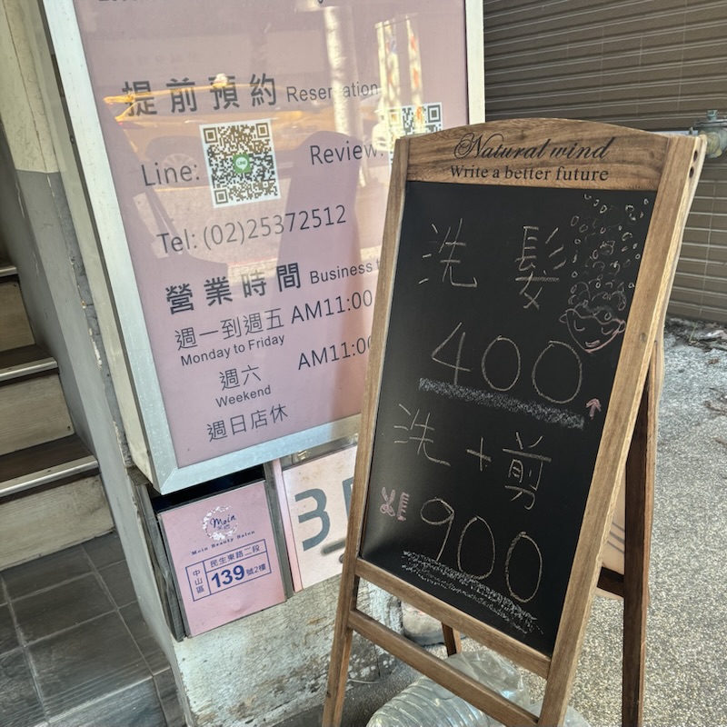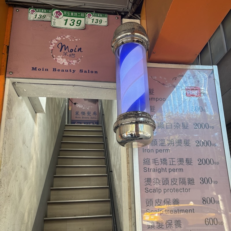 リクエストで台湾シャンプーがしたいとのことでしたので民生松江にあるMoin beauty salon(髪廊複合式美甲美睫霧眉)に行ってみました。10分のアロマオイルを使った肩マッサージと台湾シャンプーで700NTD/人でした。楽しんでもらえたようでよかったです。