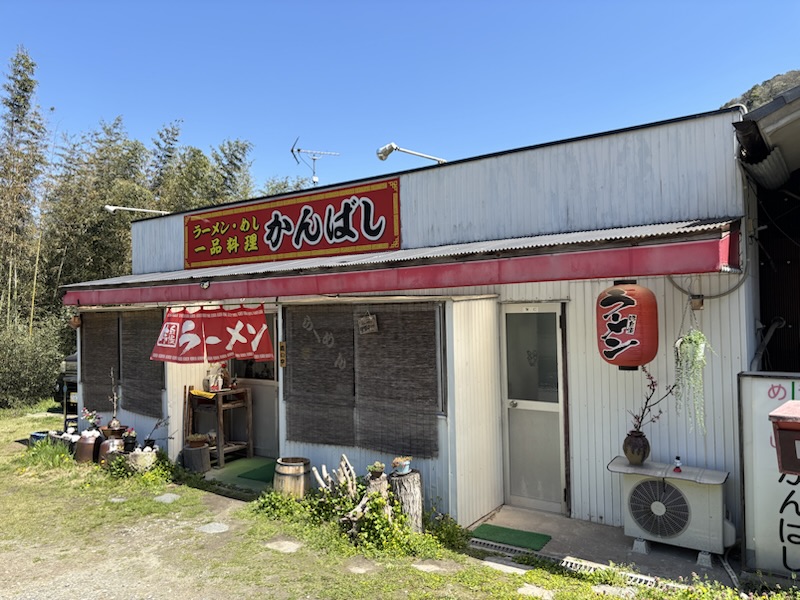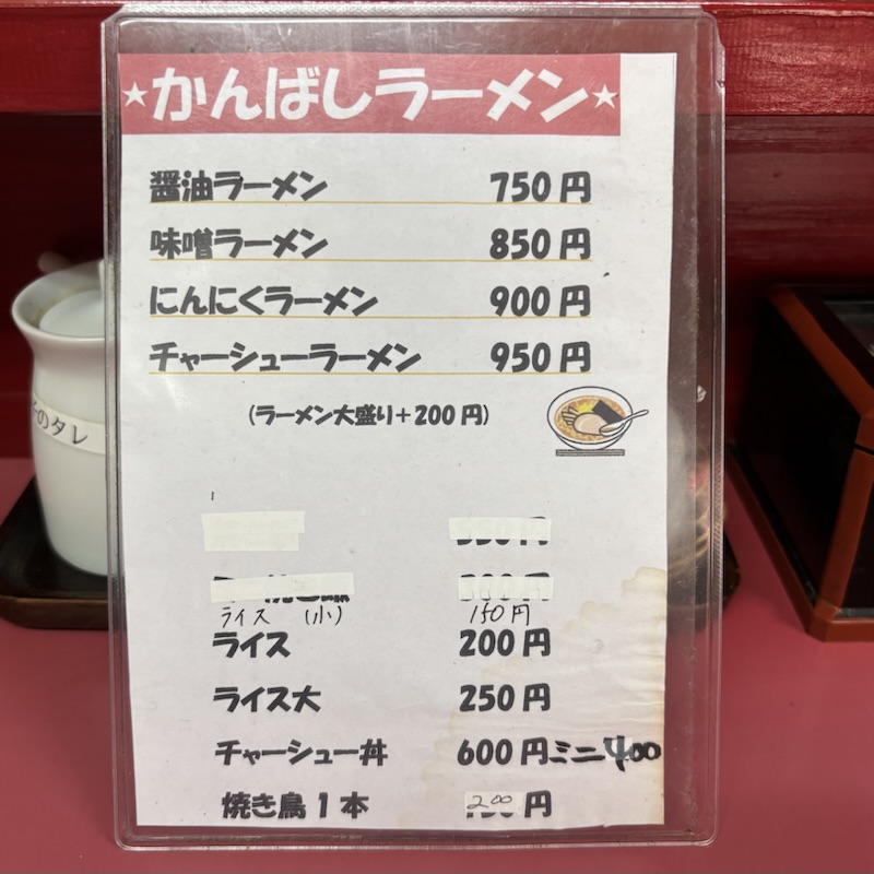 かんばしラーメンは明楽寺郵便局が近いですが県道24号の旧道沿いにあるので地図で確認していった方が良いです。カウンターのお店でお冷はセルフです。