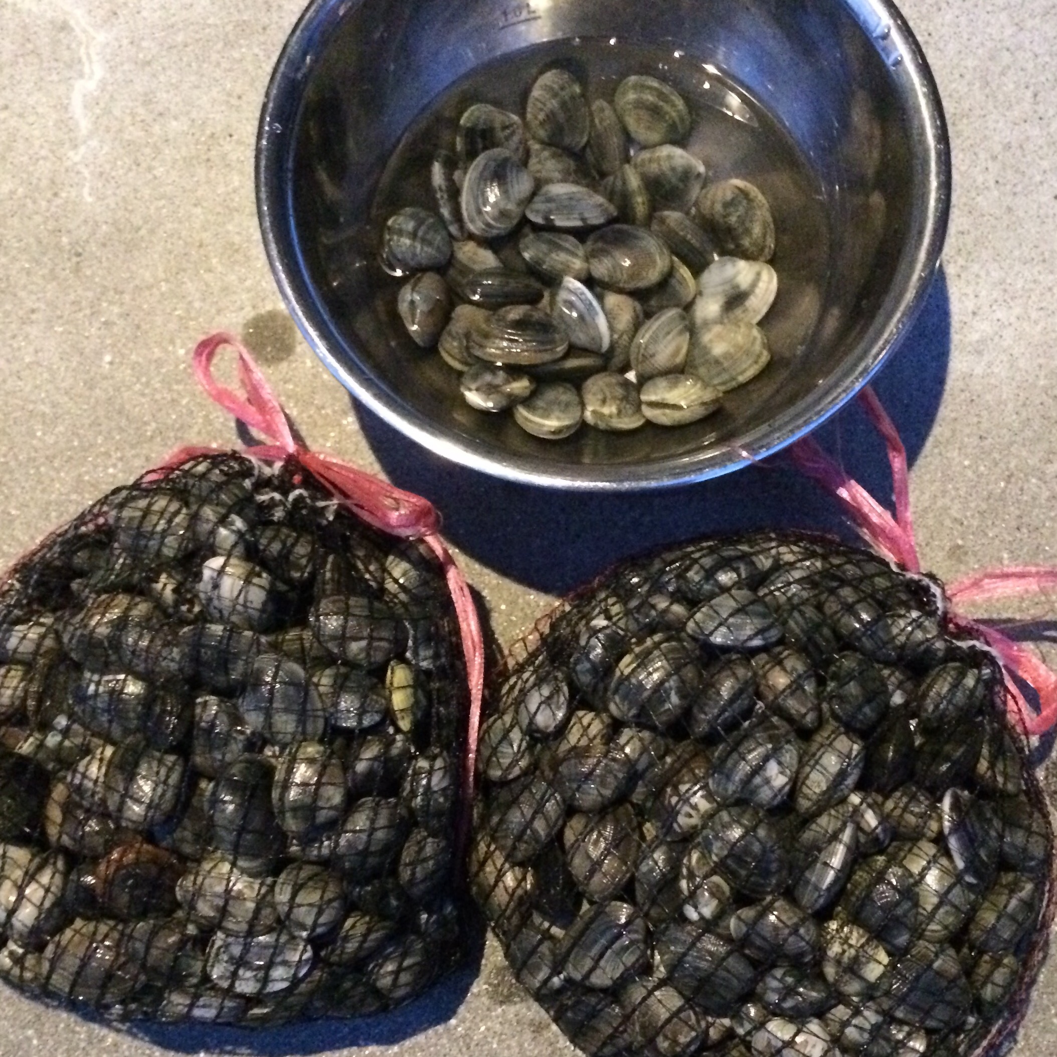 これで3年目かな?愛知県の一色海岸。海水も持ち帰って砂だしできるし大人は1000円だけど、持ち帰り用の網がついてるし(それ以上は別料金)、子ども無料だし、結構オススメです。