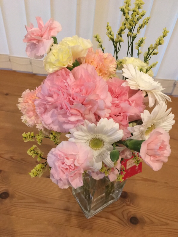 何はともあれ、とってもかわいい花束をもらって