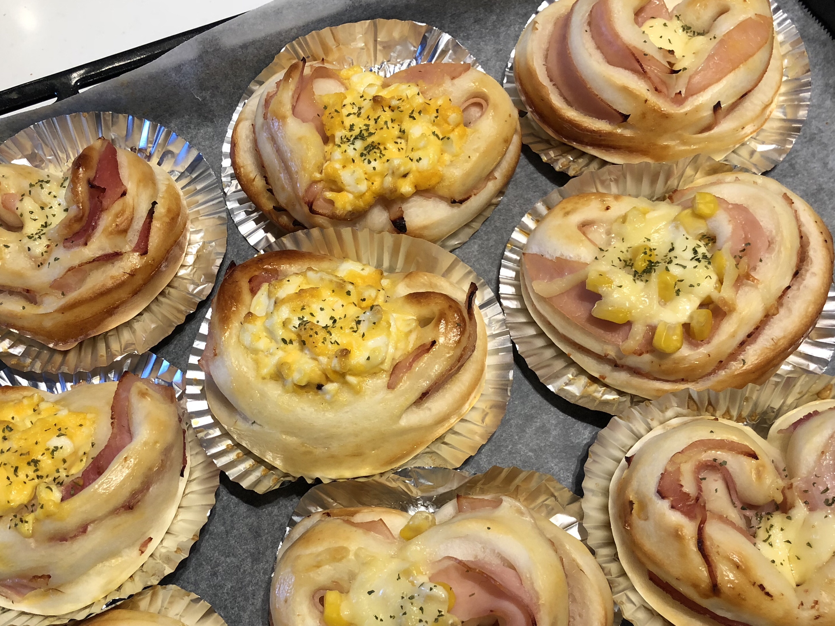 真ん中にコーンとチーズが入っているものとタマゴサラダを入れたものも作ってみました(*^^*)