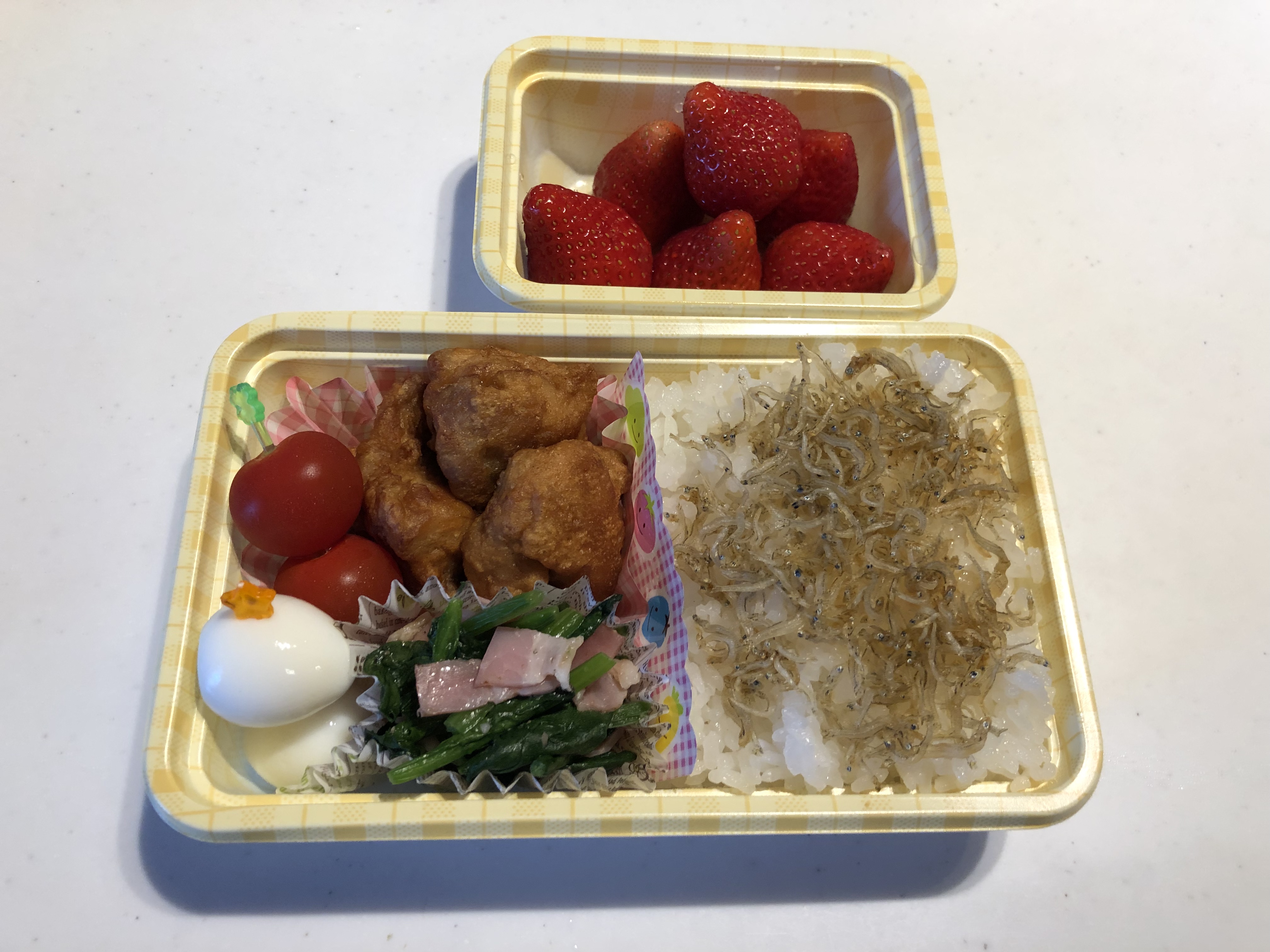 いつもより早いお昼って事で少なめの唐揚げ弁当。