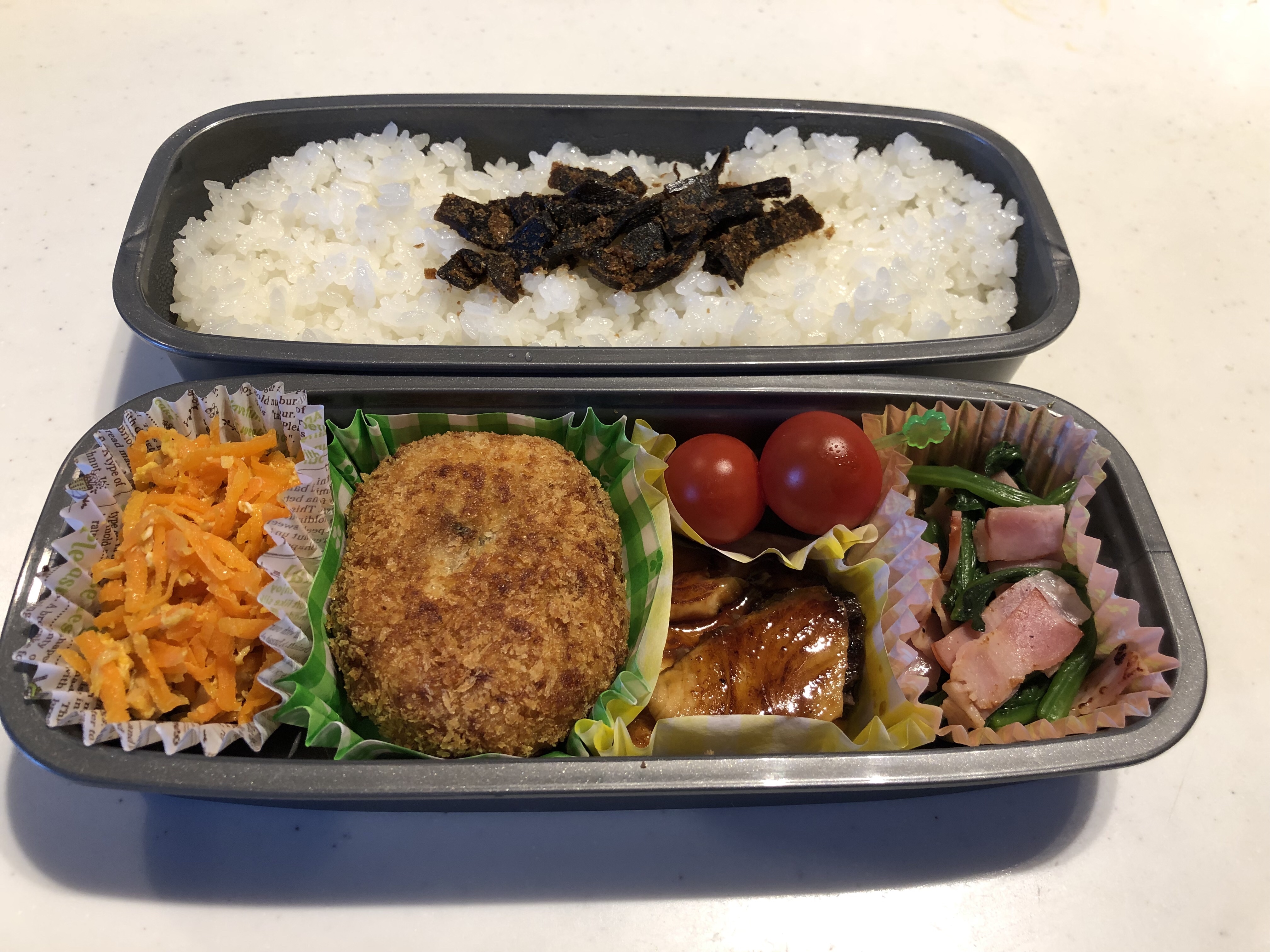 もう日付がわからない(笑)この日は前日の肉じゃがをリメイクしてのコロッケ弁当。