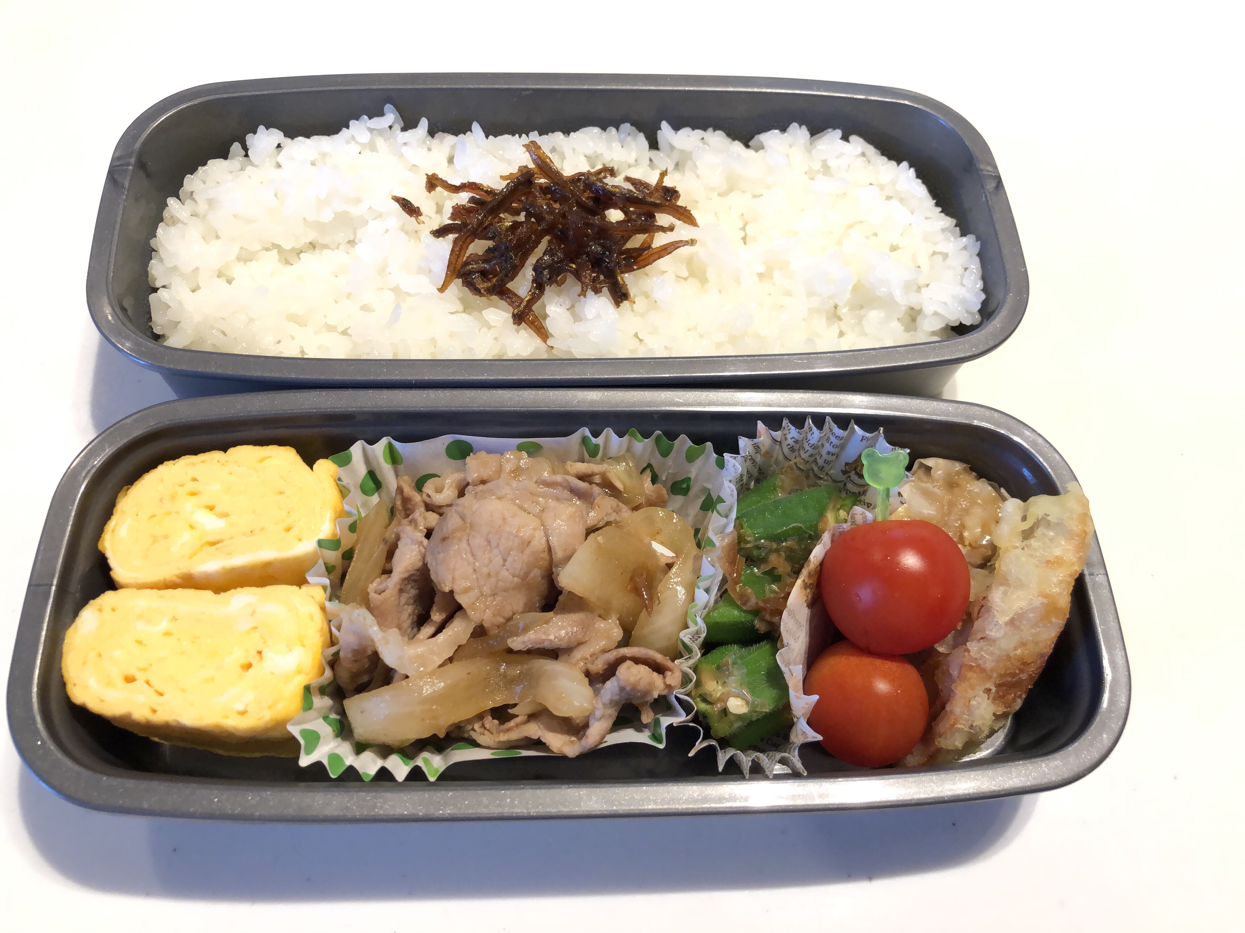 豚肉の焼肉弁当。生姜焼きではなく焼肉のタレにて味付けしました。