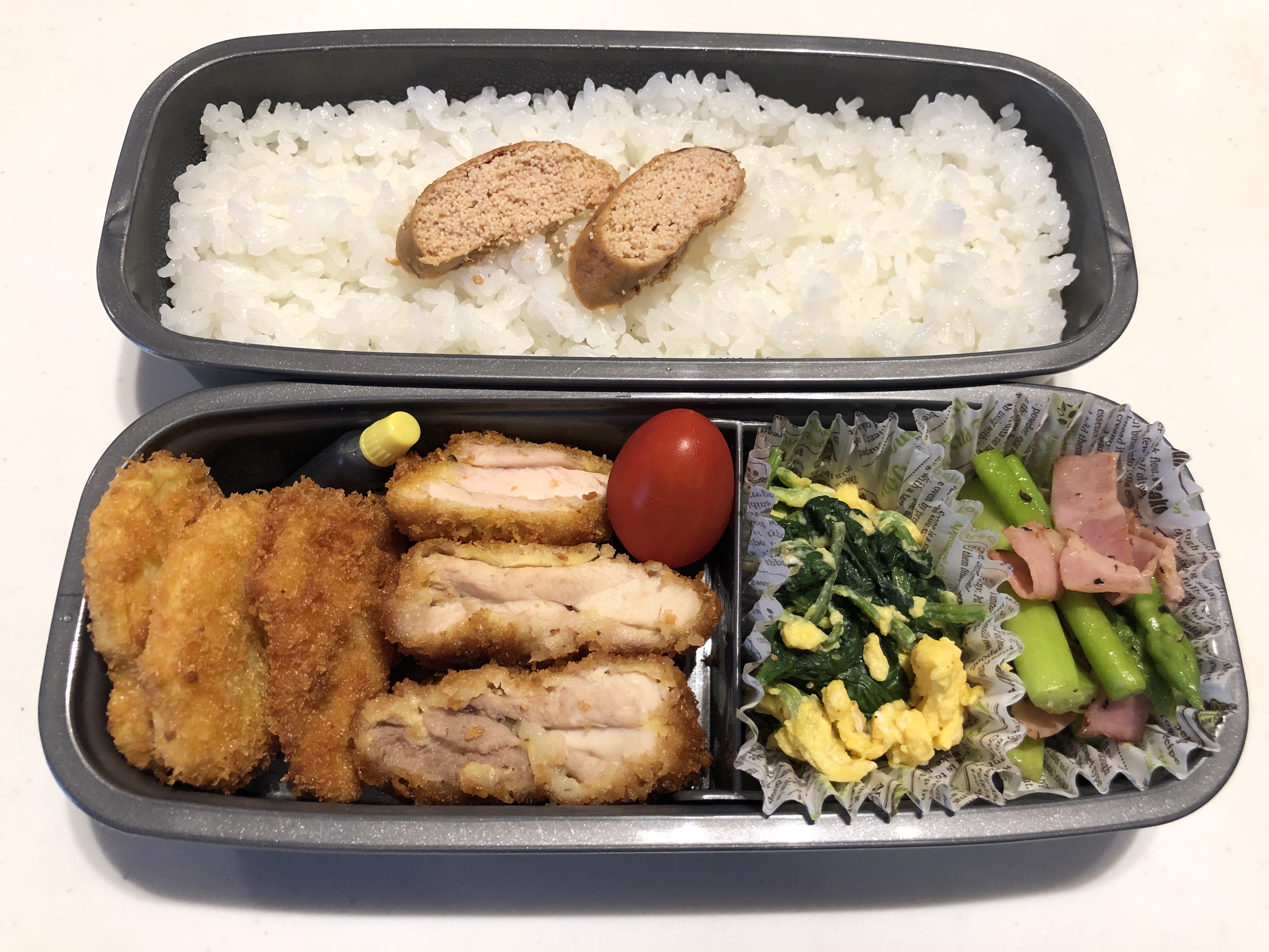 オクラの豚肉巻きにチキンのハーブ焼き弁当。