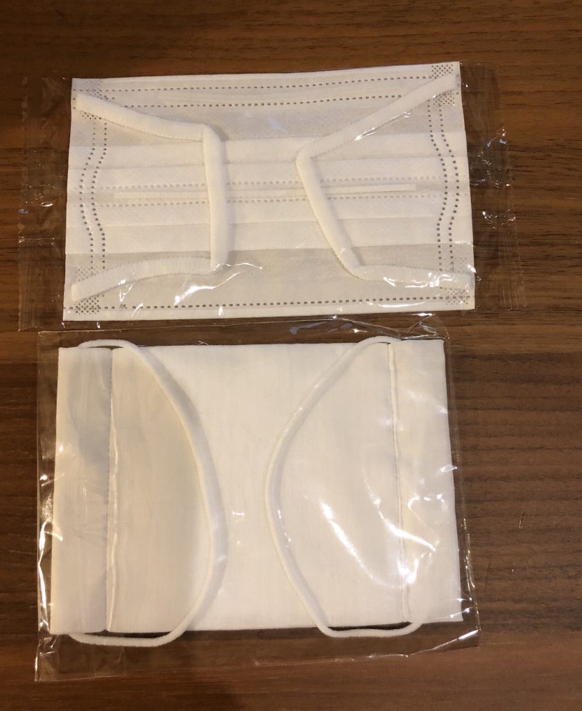 ちなみに写真の上がムスメ用の小さいサイズのマスクで、下がアベノマスク。