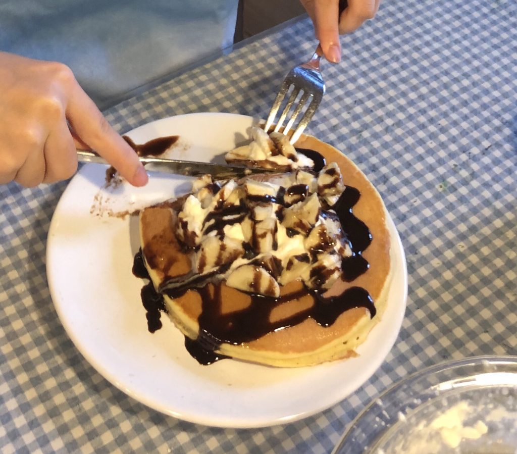 ないもののひとつのホットケーキミックスに久々に出会えたので昨日のおやつはホットケーキに。