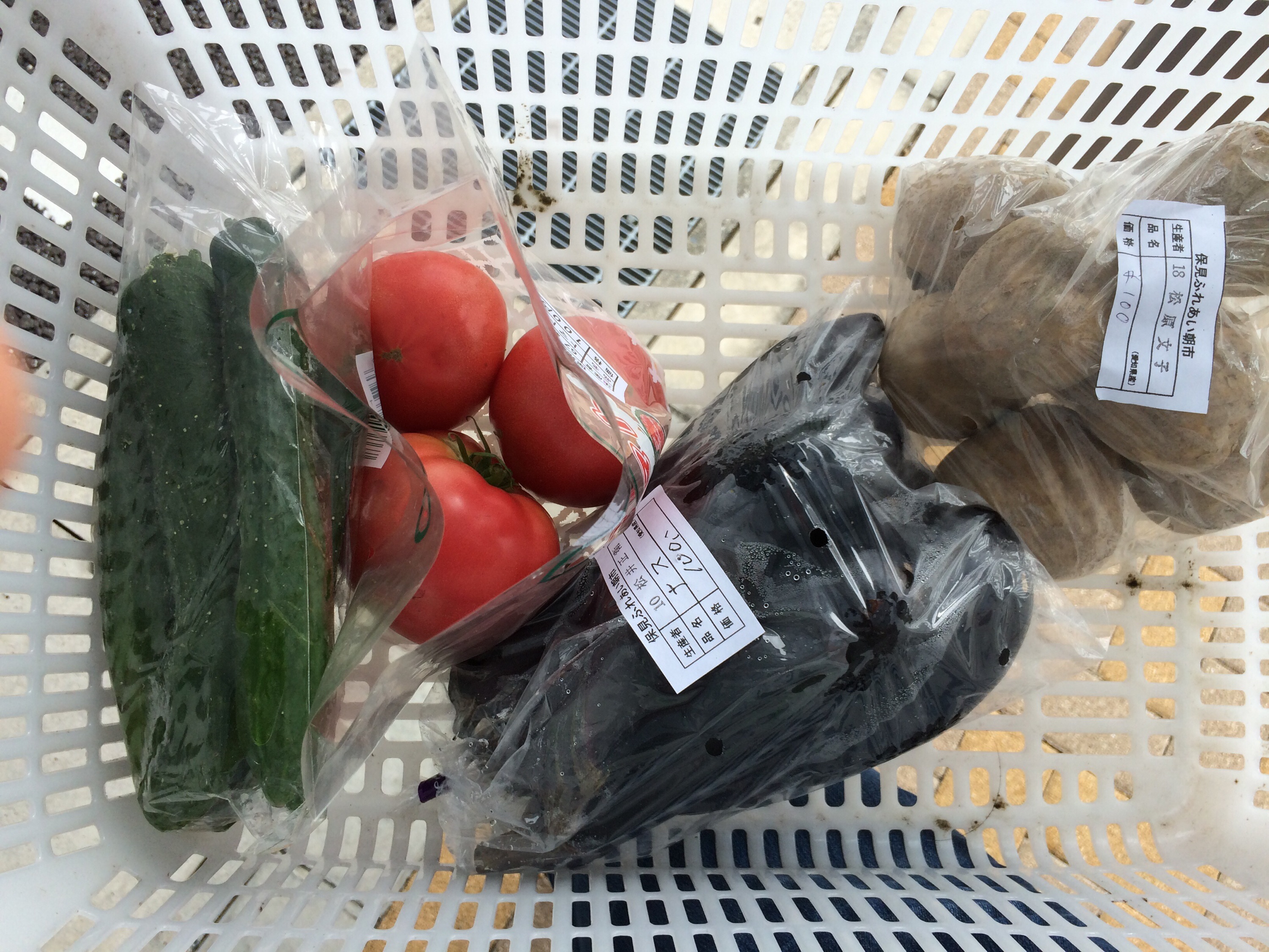 朝市 by natto_mama · 2015年7月19日 今日は近所の交流館の朝市に行ってきました。到着したらすでに帰る人が。まだ始まって2分なのに(^^;;皆さんいつも並んで待っておられます。 今日買ったのはコレー↓ 全部100円。農家の方達が集まってされている朝市なのでとても新鮮。先週は大きな大きなスイカを980円で購入。やっと昨日完食。我が家の冷蔵庫を占領していてやや邪魔な感じだったけど、かなり甘くて美味しいスイカでした(*^^*)