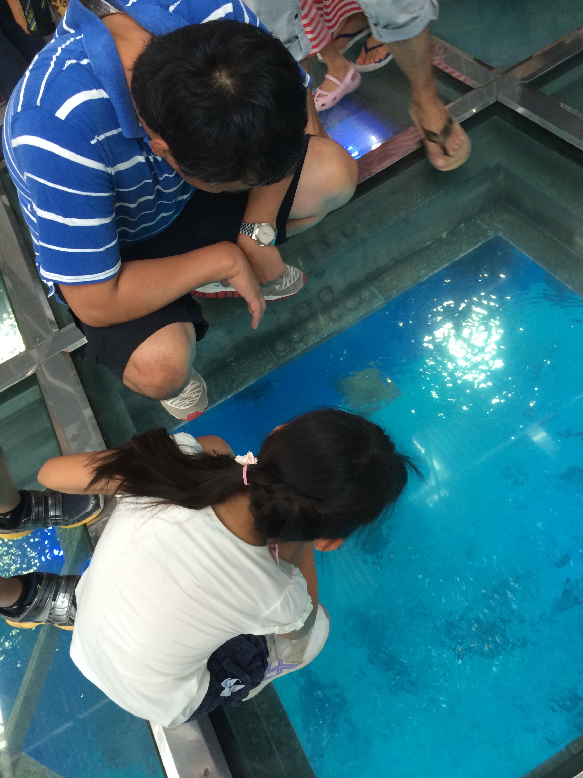 ムスメ、初めて見る(この前海遊館に行ったらお留守だったもんね)ジンベイザメに大喜び(*^^*)撮影:ムスメ