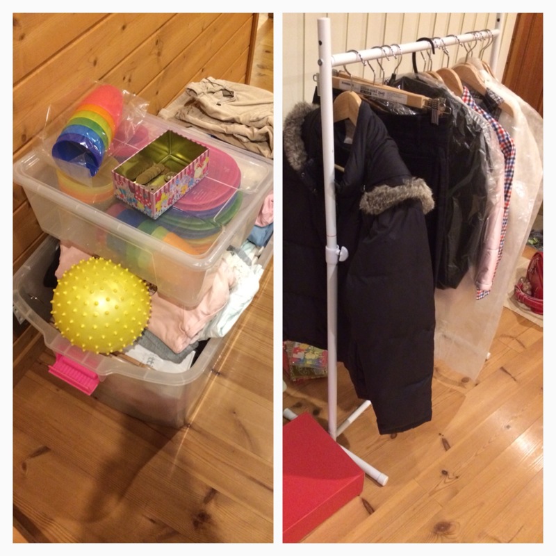 かれこれ13年も昔の私のダウンやIKEAで購入したプラスチックの食器の詰め合わせ(used)、新聞屋さんがくれた買い物袋にUNIQLOの景品まで(笑)