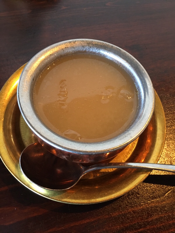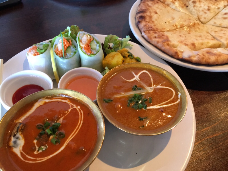 ちょっぴり不思議なお味のスープから始まり、生春巻きにカレーも二種と豪華。